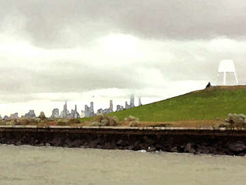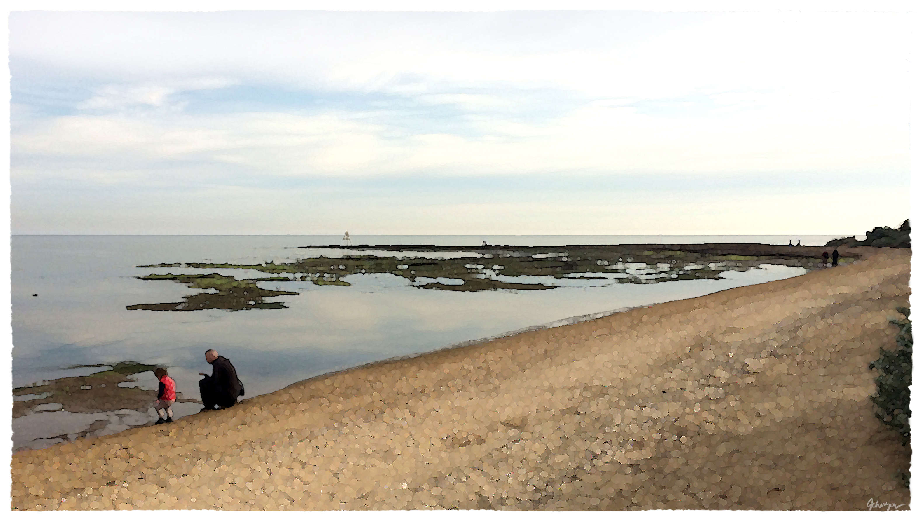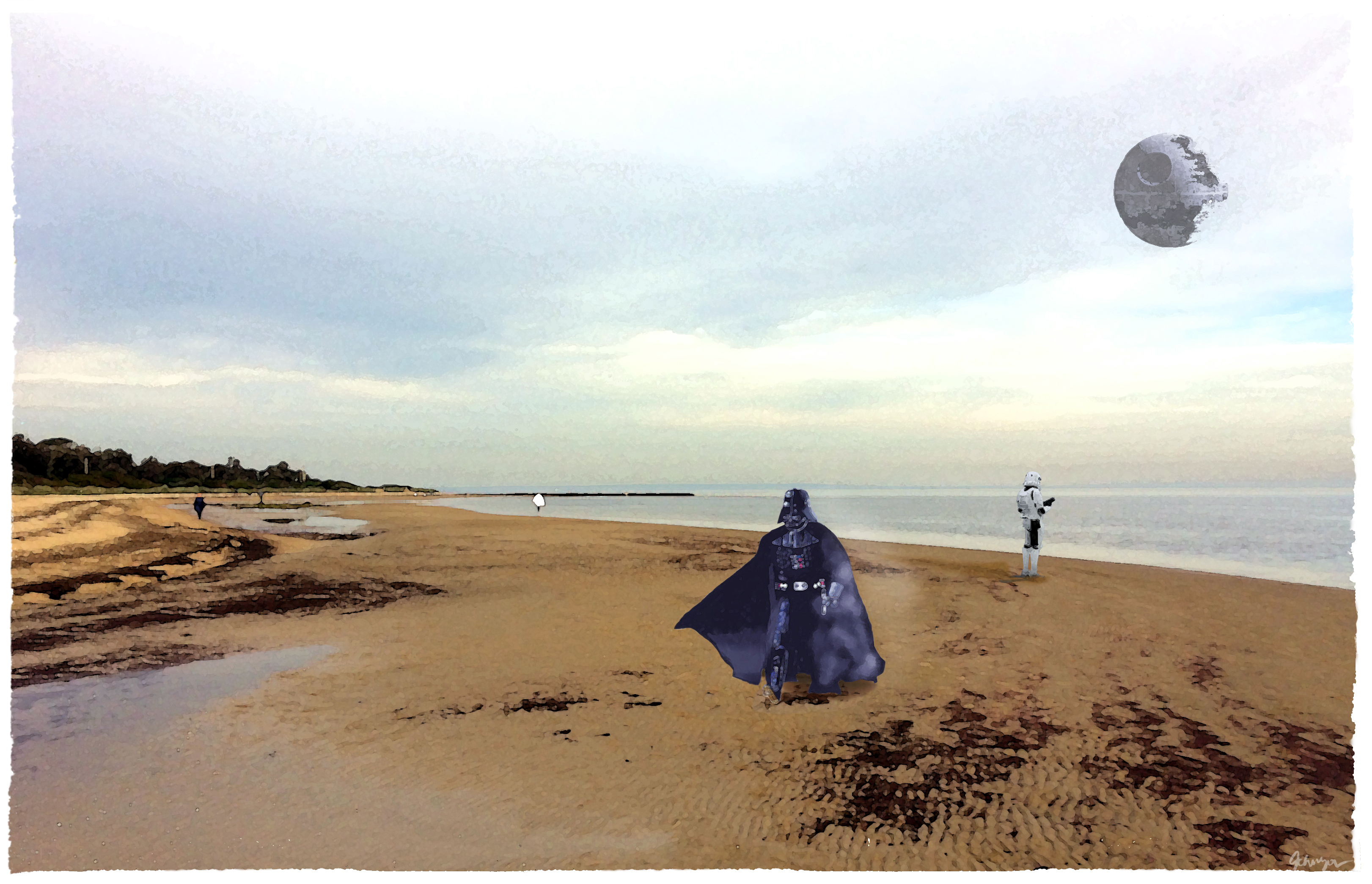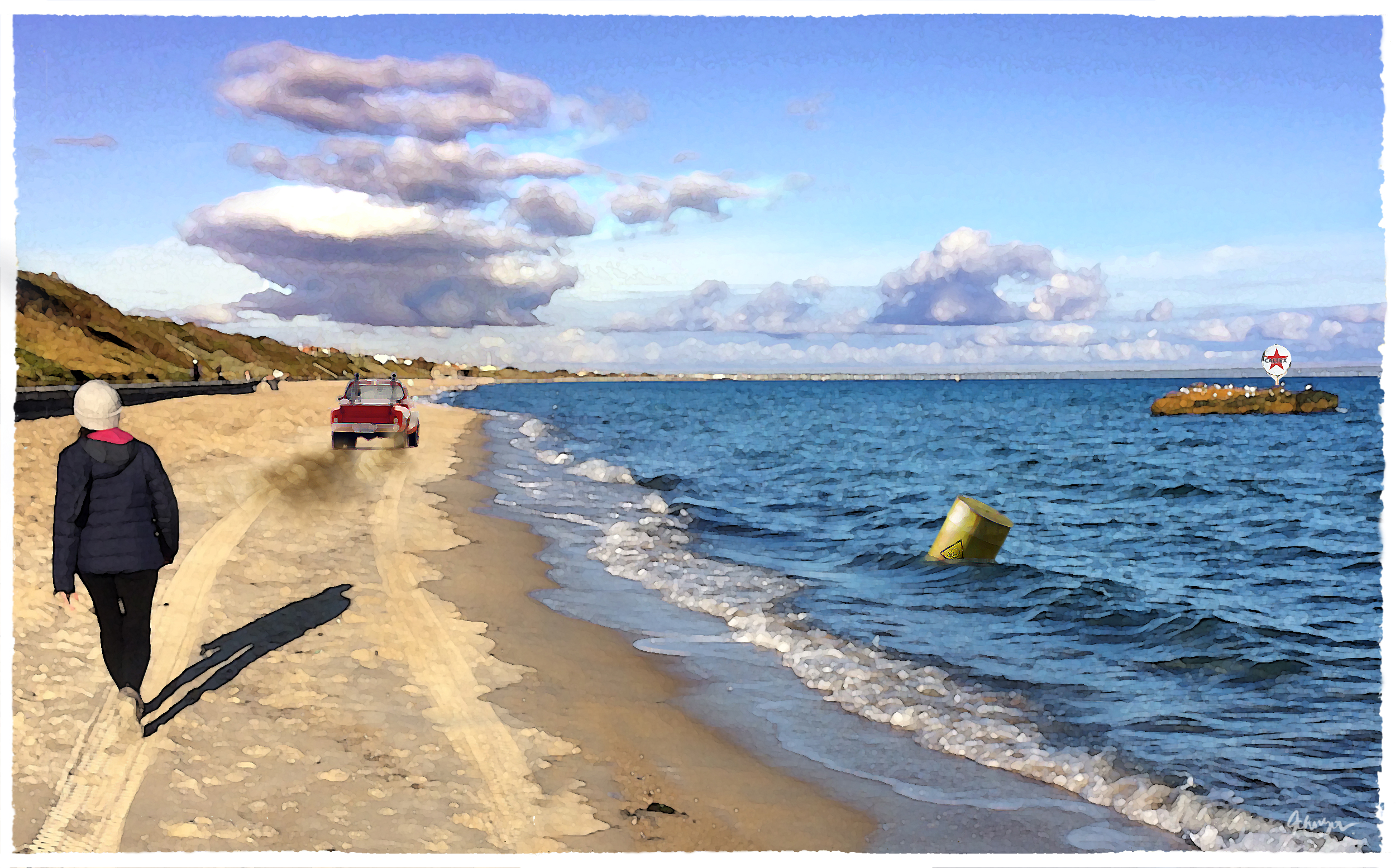 The Bayside Art Trail spans 17kms along Port Phillip Bay from Elwood Beach to Beaumaris. The trail celebrates the lives and artwork of Australian artists who painted the Bayside coast. Today, the trail extends much further around the bay. I've taken some license to include St. Kilda. My predecessors included people going about their daily activities providing a snapshot of the fashion and themes of the period. Growing up in the 60's I was influenced by the golden age of TV where the uncommon was found in the common place, i.e., the Munsters, My Favorite Martian, etc. This genre of anachronism stuck with me.