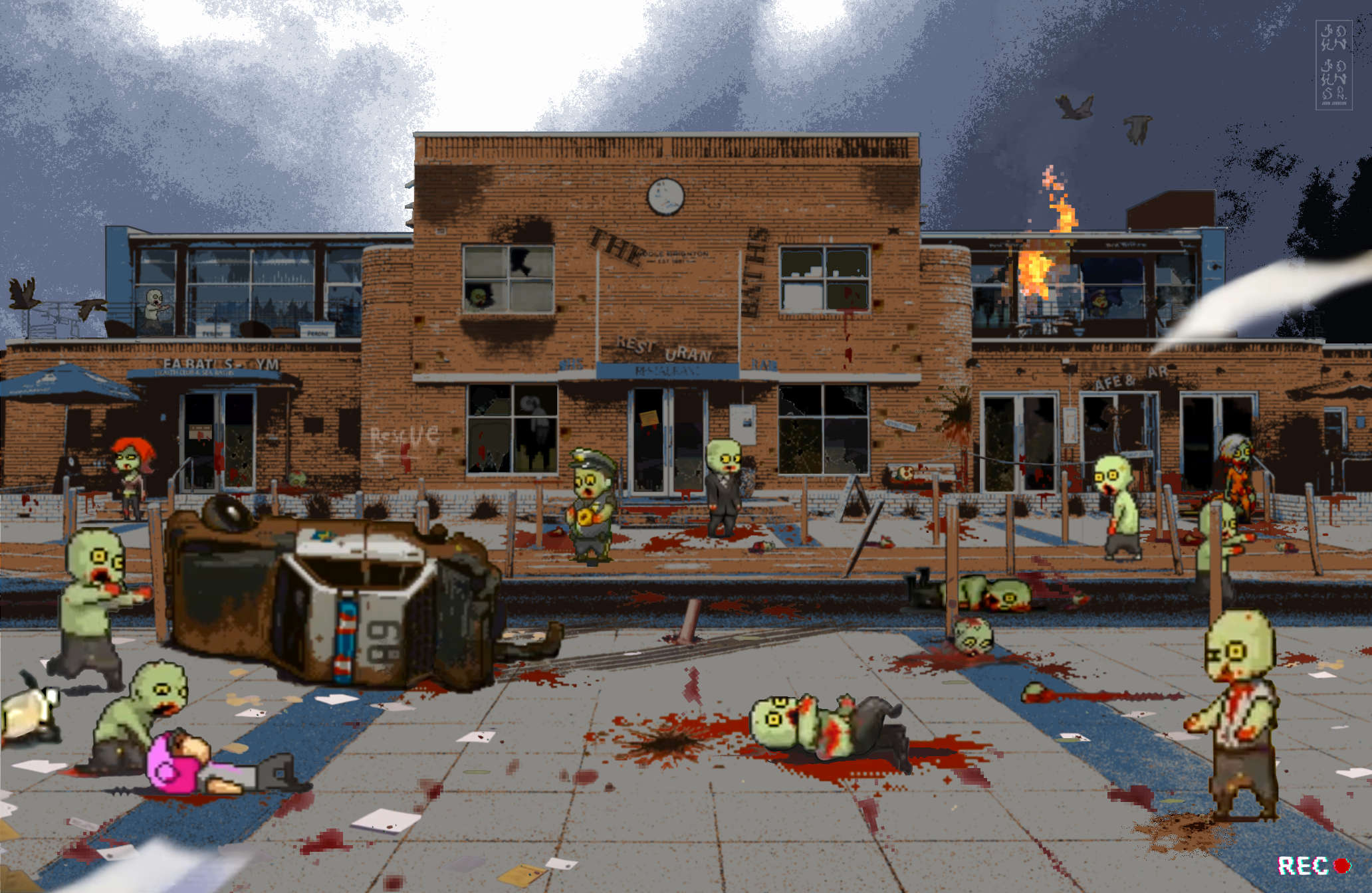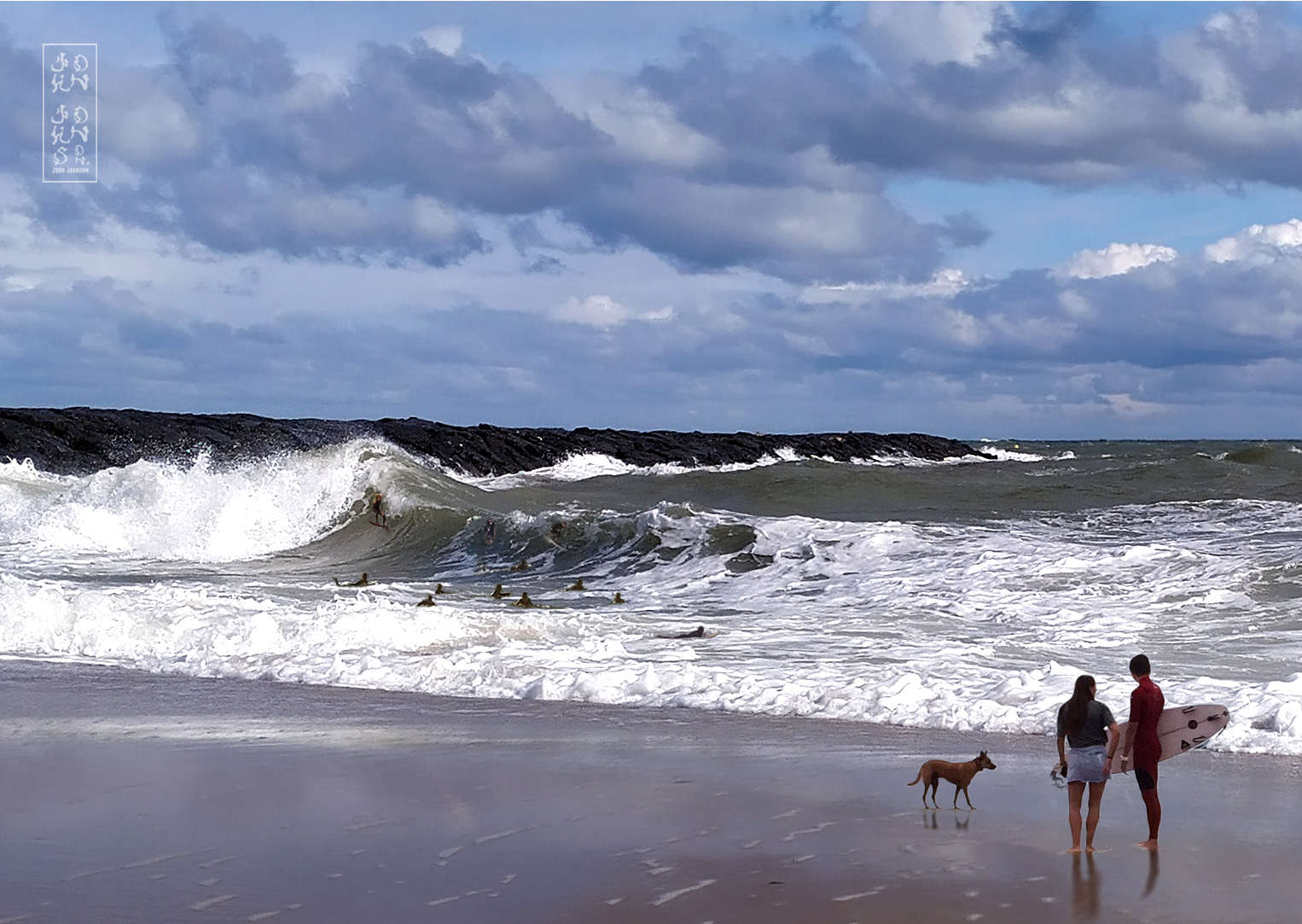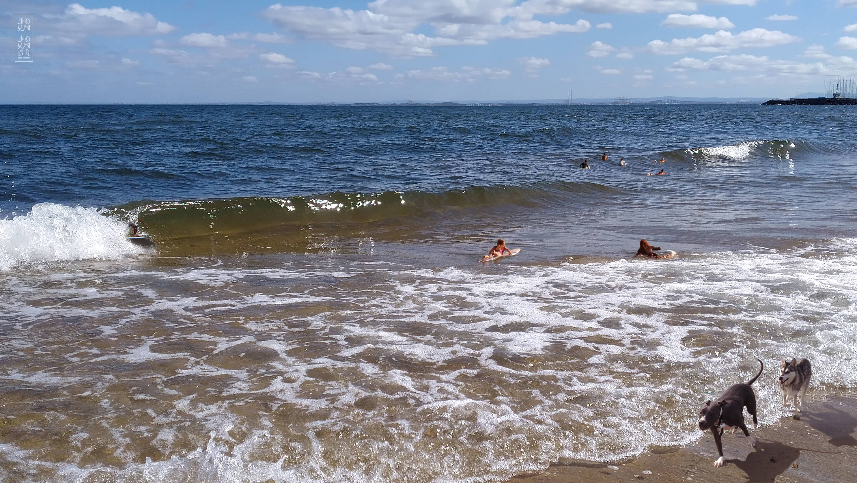After being let go from the power plant Homer is at the end of his rope. We find him bleeding-out on the rocks at the end of Cole Street after a botched snatch and grab at the local 7-Eleven. Meanwhile, desperate locals shred the Bay's alarmingly polluted waters. A rare sighting of "Phillip" — the Bay's mythical beast emerges to catch a glimpse of the chaos. The expression on the photo-bombing retriever's face sums up the scene.