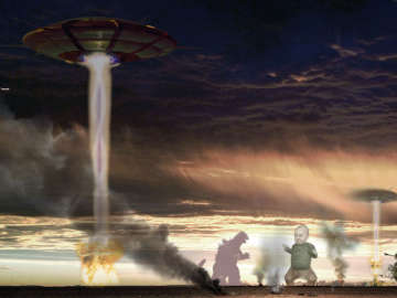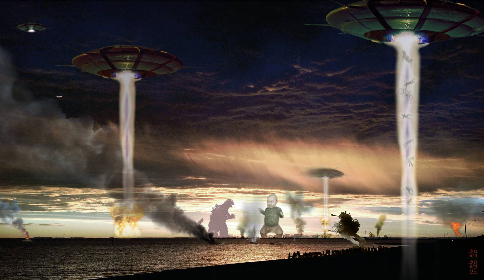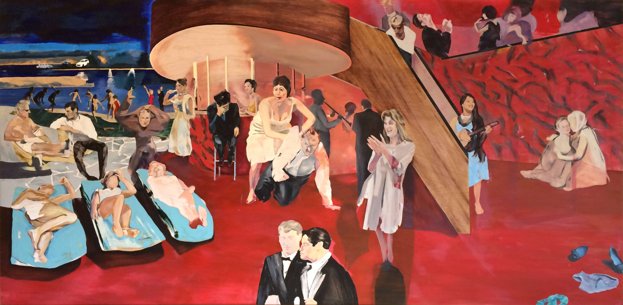 The sausage: She's a monster — 8'x4' painted with acrylic and oil paints on sanded and varnished plywood. Private Collection.